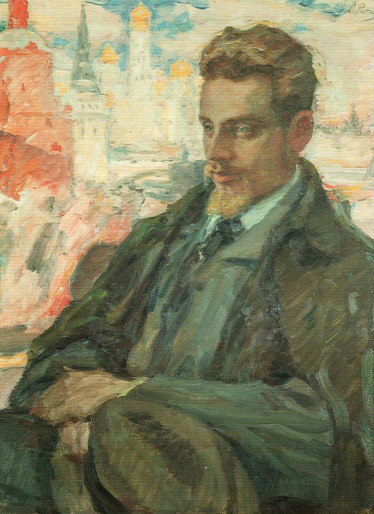 Photographs of Rilke are rather somber – culturally, it was thought inappropriate at that time to smile for the camera. This painting, however, (source unknown to me) offers a thoughtful aspect.